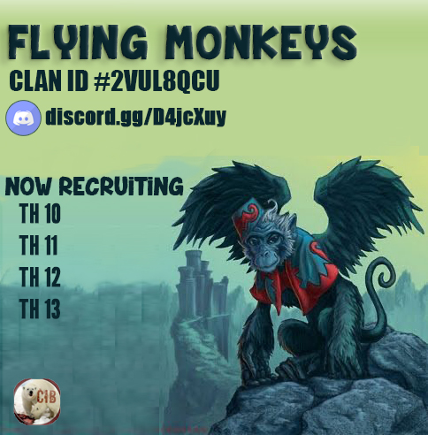 Flying MonkeysGrowing clan looking for experienced players sister clan to Clan ICE BEARS accepting Th10 and up for League and regular wars |