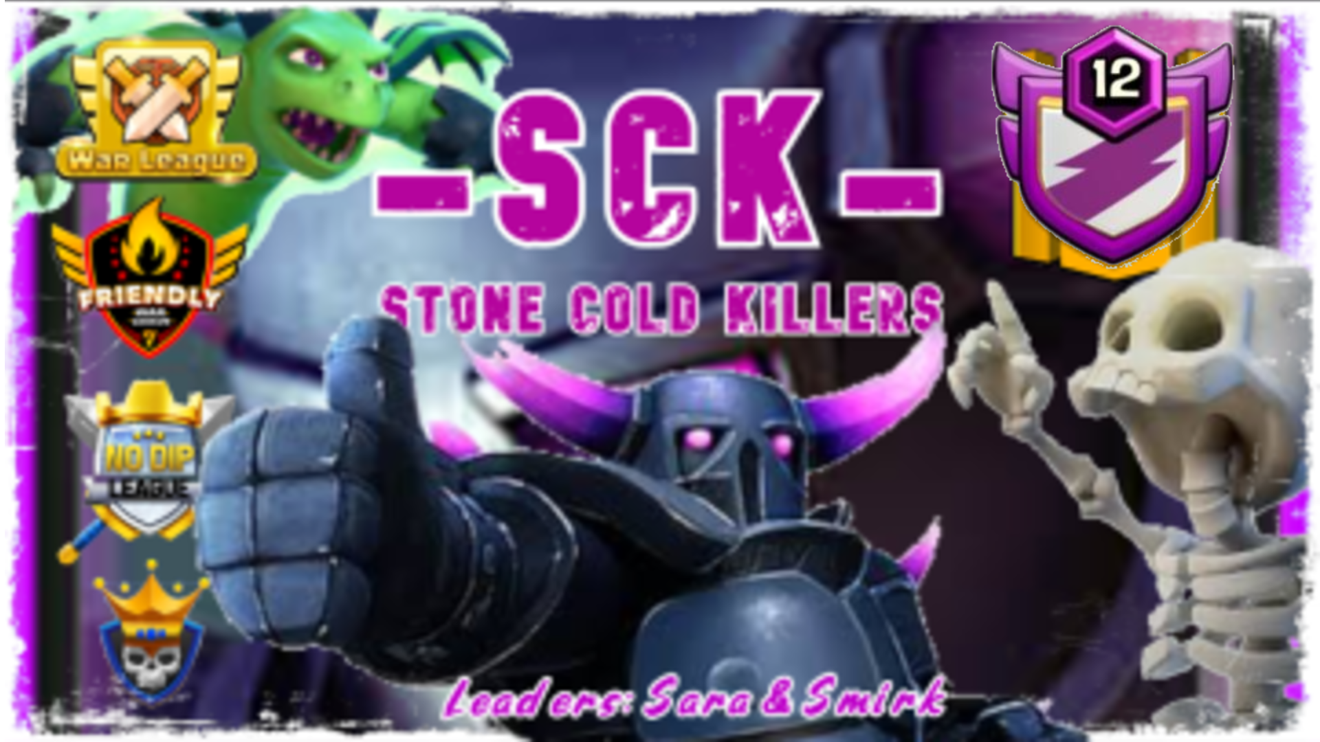 -sck-war clan system with 3 clan tags, dedicated to growing the war league community and introducing new people to it. We have players from all around the world and multi lingual leaders. If you want to up your game , do some networking this is the place for . players of all levels welcome. newb to elite, we have a place for you . We will teach you everything you need , war atks strategies ,downloading / using discord , using warmatch/wmbot for wars. We max clan games in 25-30 hrs every month. We have rooms for every townhall lvl full of bases with one click download links / videos that teach atks for every level. We have videos that teach all the most update upgrade guides to ensure u upgrade in correct order. Get as strong as possible, keeping war weight in check. Are you ready to help build our next teem for the next season of leagues? |