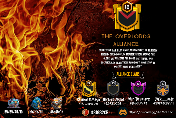 Lords of OthrysBASIC CLAN RULES: - Must speak English and be able to follow war strategy/notes. - Most wars, attack mirrors 1st then clean bottom to top. - Make sure youre available when it is your turn to attack. If you have time zone/work conflicts, let someone know so you can be given a target early. Do not attack late! - Use both attacks in every war. - Always make sure your army is ready before you attack. All heroes ready, army, spells and clan castle full. - Change war setting to RED if heroes or spell factories are upgrading. - Participate in Clan Games. Everyone is expected to get max points. - We are here to help and encourage each other and have fun. But we do not play in war. Be ready, do your best. You should be actively participating in war more often than not throughout the month. No farmers. |