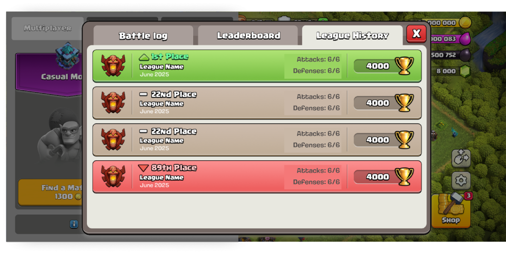 - Each Town Hall level has a League Floor — you can’t fall below it.