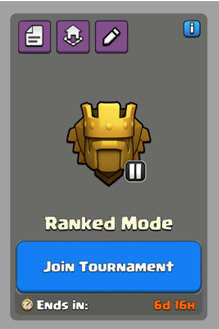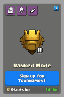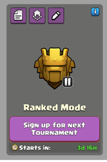 | Never played a tournament before | ![]() Timer state: Counts down to the start of the next Eligible battling period (“Tournament starts in…) | ![]() Timer state: Counts down to the end of the current battle period (“Current Tournament ends in…) | ![]() Timer state: Counts down to the start of the following Eligible battling period (“Next Tournament starts in…) |